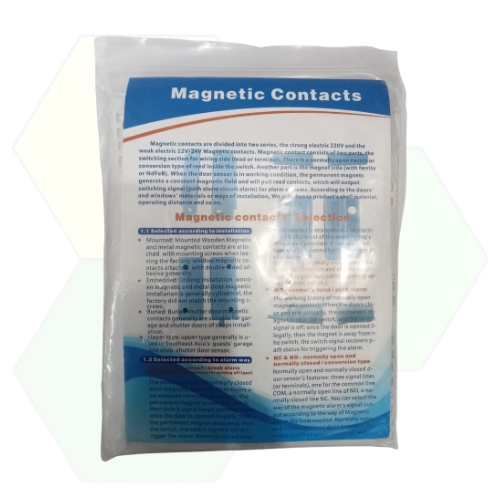 The Magnetic Door Sensor is a surface-mounted, wired, magnetic proximity sensor used to detect when a door is opened and closed or when a cover panel is attached or removed. The Magnetic Door Sensor is designed for quick and easy installation as well as a long life (4 million operations).